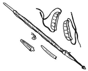 5. JIGGING STICK. Tomcod, trout, and smelt are fish that will strike at almost anything that moves. A person makes a hole in the ice. She drops a line and hook into the hole and jiggles it up and down. The fish bites, and she pulls it out. She wraps the line around the jig stick as she pulls the fish up. 6. TRAPS AND SNARES. We get some of our meat by trapping and snaring. Even kids can set a rabbit snare. Just find a rabbit trail. Find a place where the trail comes out of the bushes. Hang a snare on the bush, and wait for the rabbits to come through. Other animals that are trapped are foxes, marten, mink, and lynx.